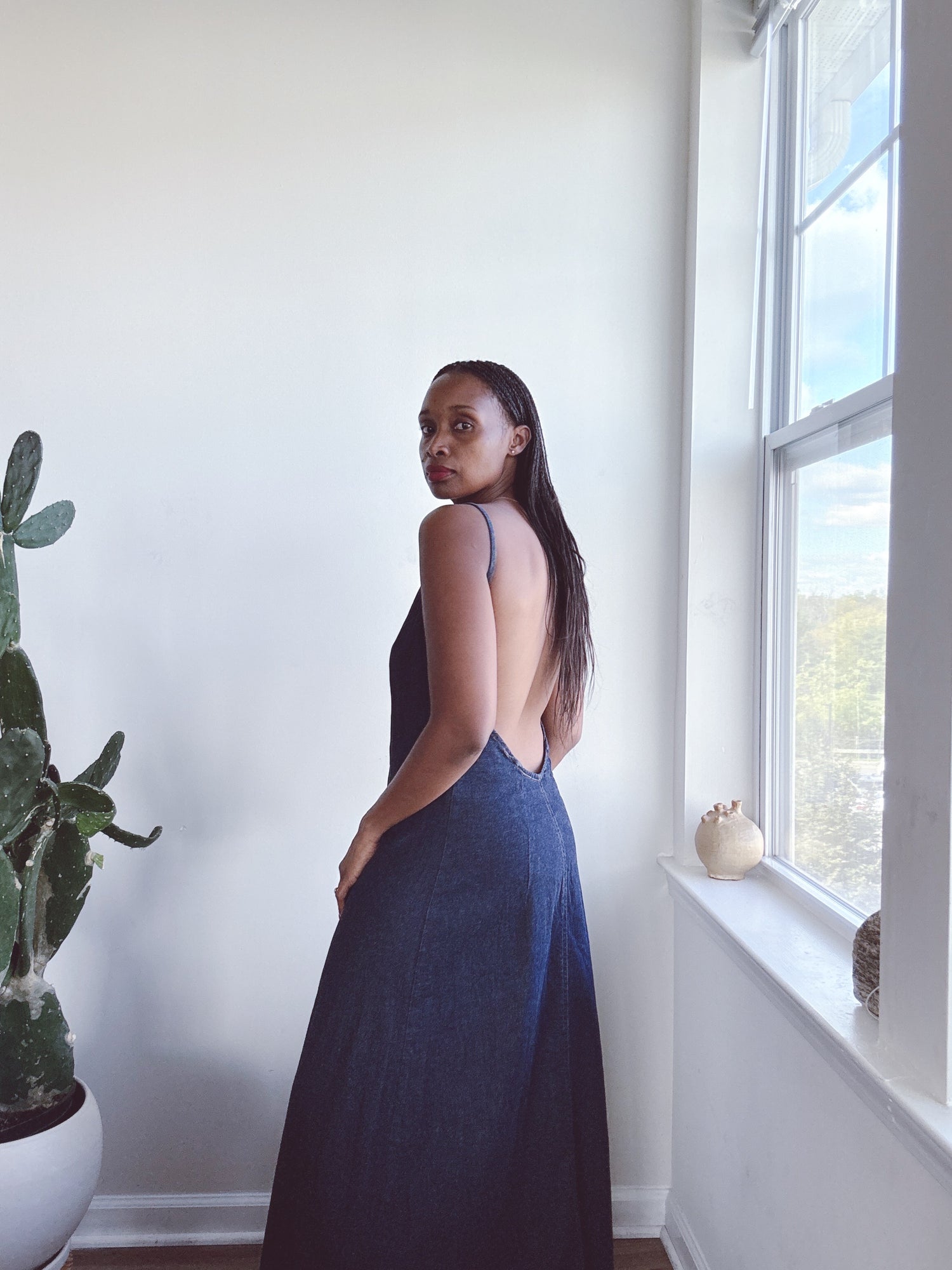 Denim vintage minimalist dress. Cotton with a little stretch