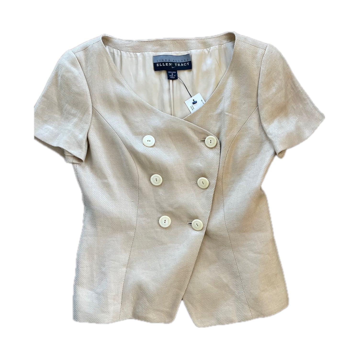 Ellen Tracy Beige Double-Breasted Short Sleeve Top - Size 8