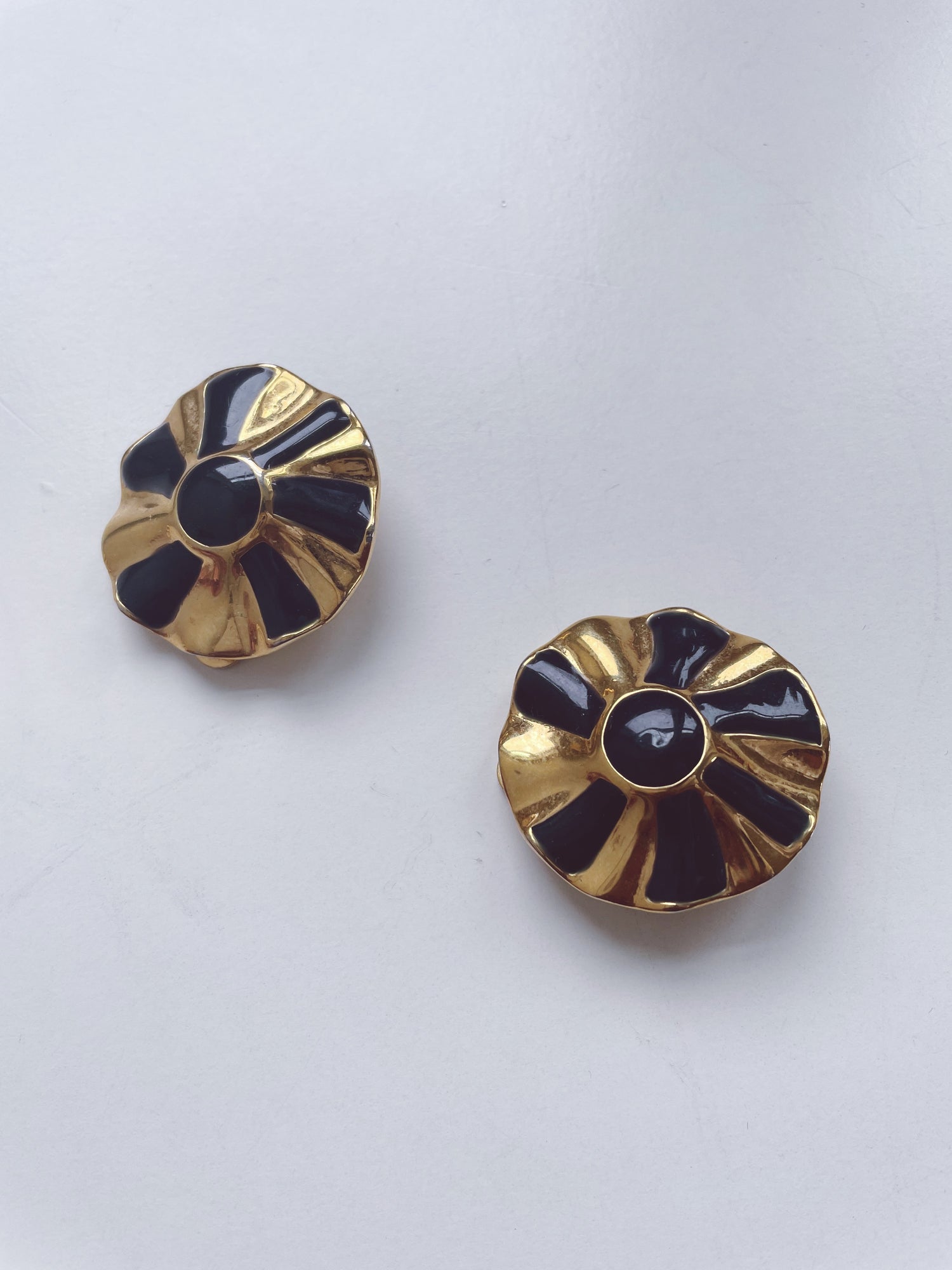 ESSEX Vintage Gold Tone Black Enamel Clip On Earrings