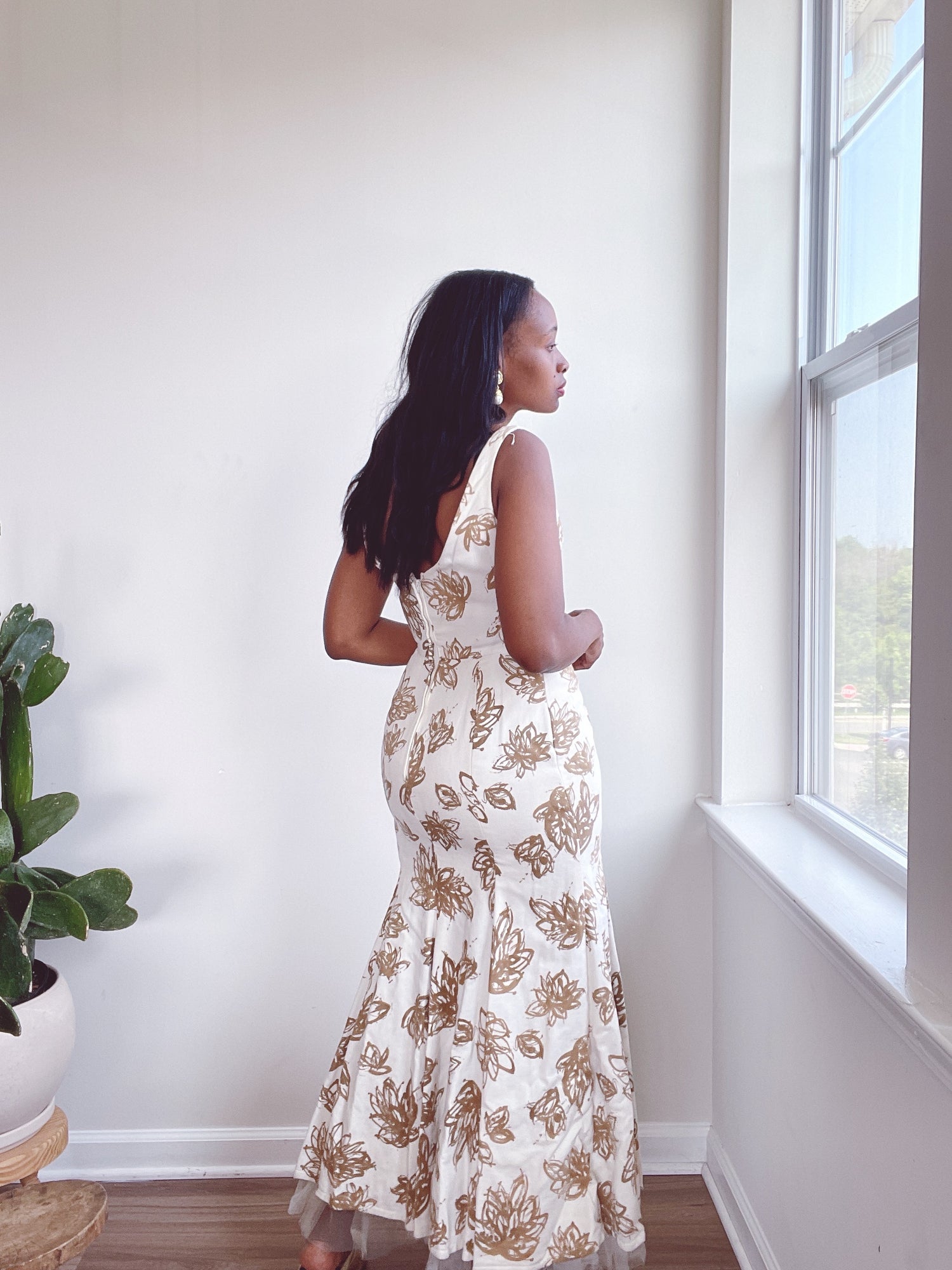 60s floral cotton dress. Tulle at bottom to add slight fullness and movement.