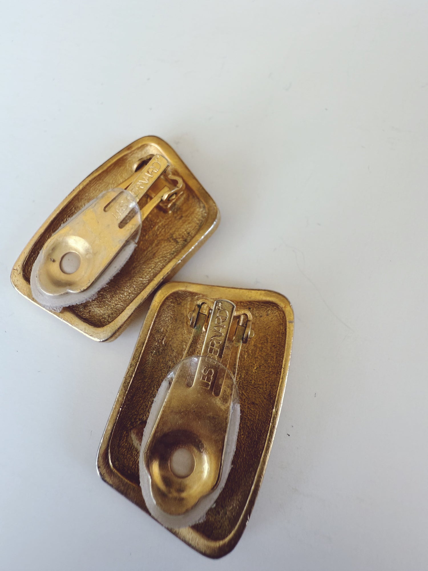 LES BERNARD Vintage Gold Metal Modernist Clip On Earrings