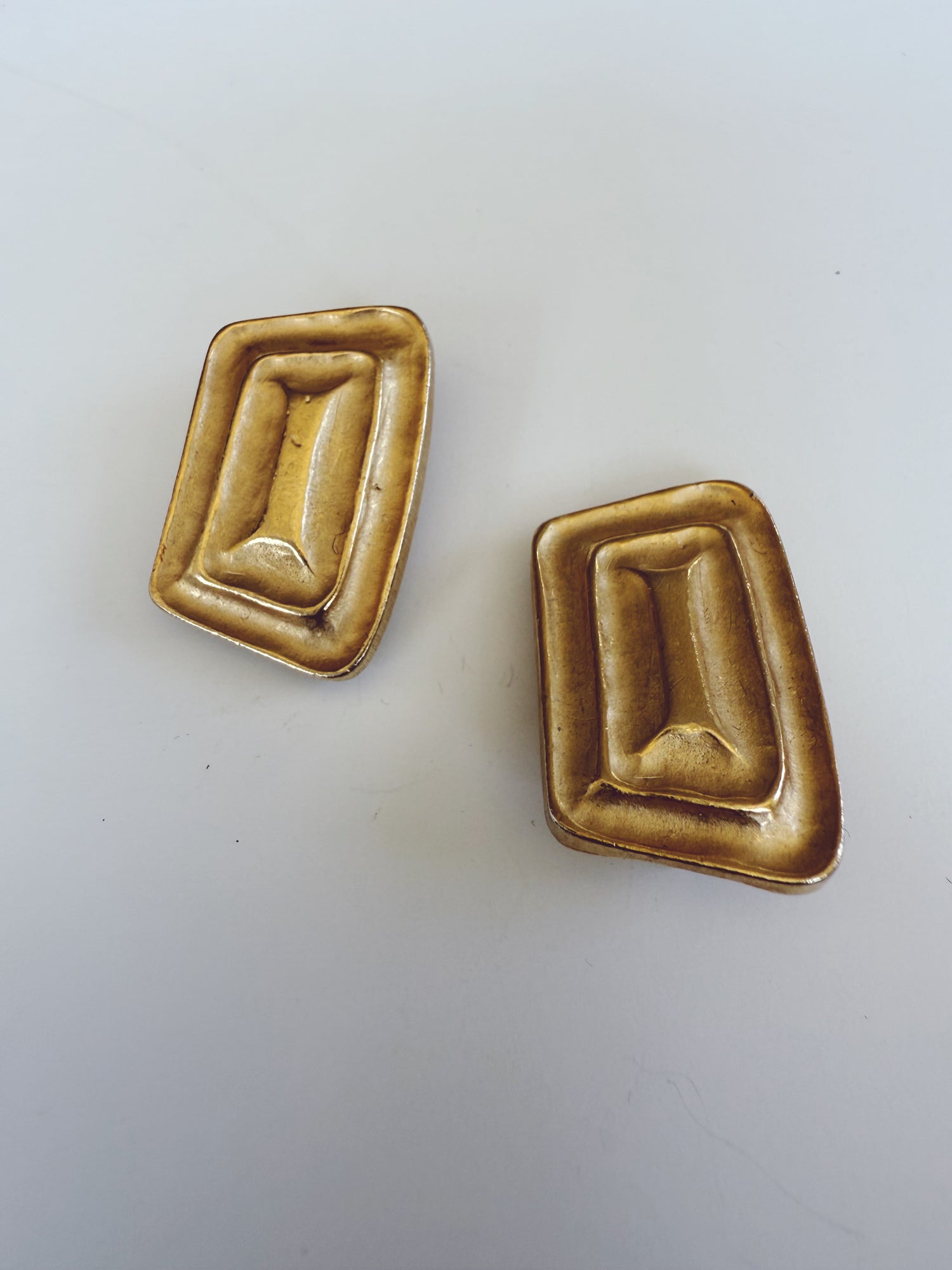 LES BERNARD Vintage Gold Metal Modernist Clip On Earrings. 1.25” clip ons. Marked Les Bernard