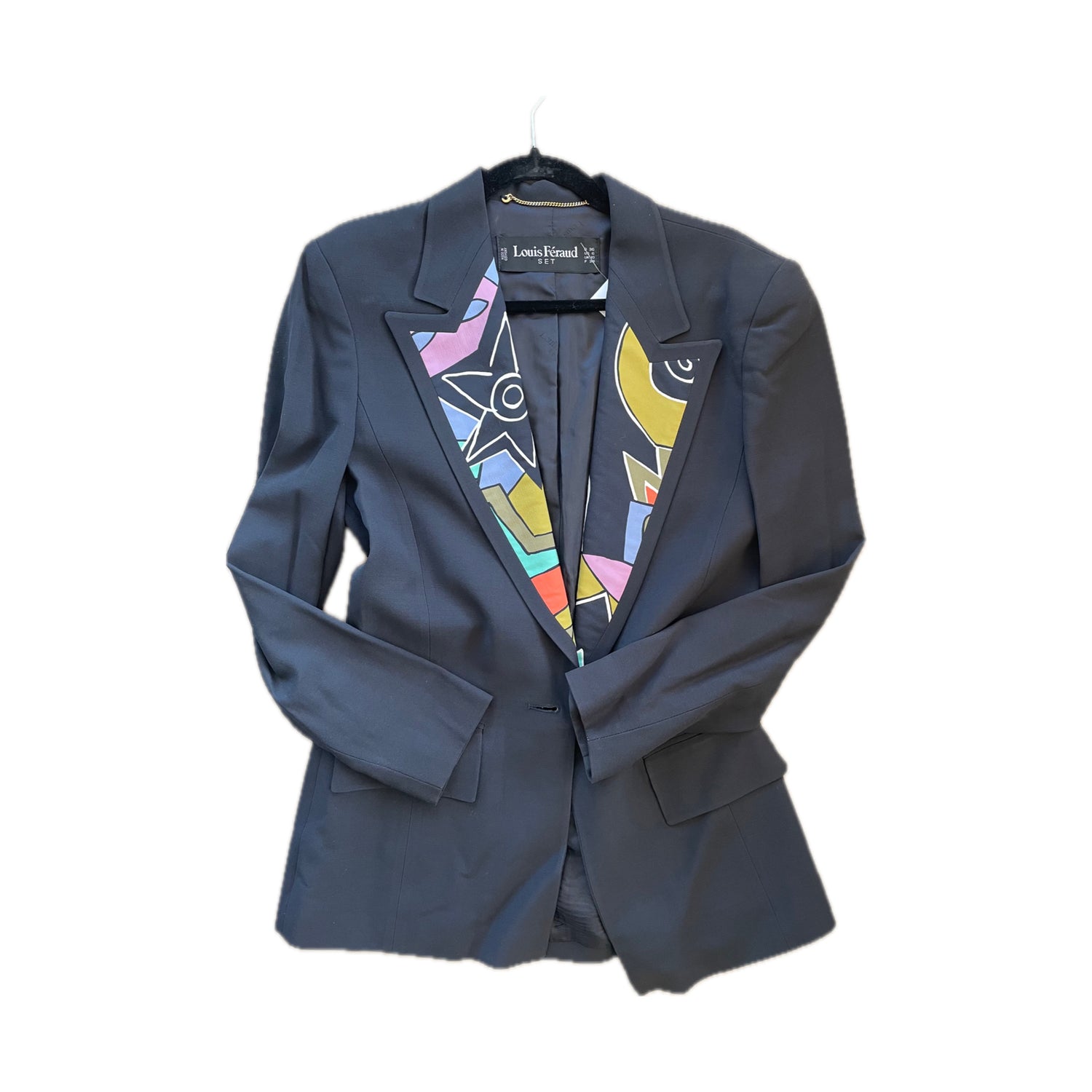 LOUIS FÉRAUD Black Blazer Geometric Color - Size 6
