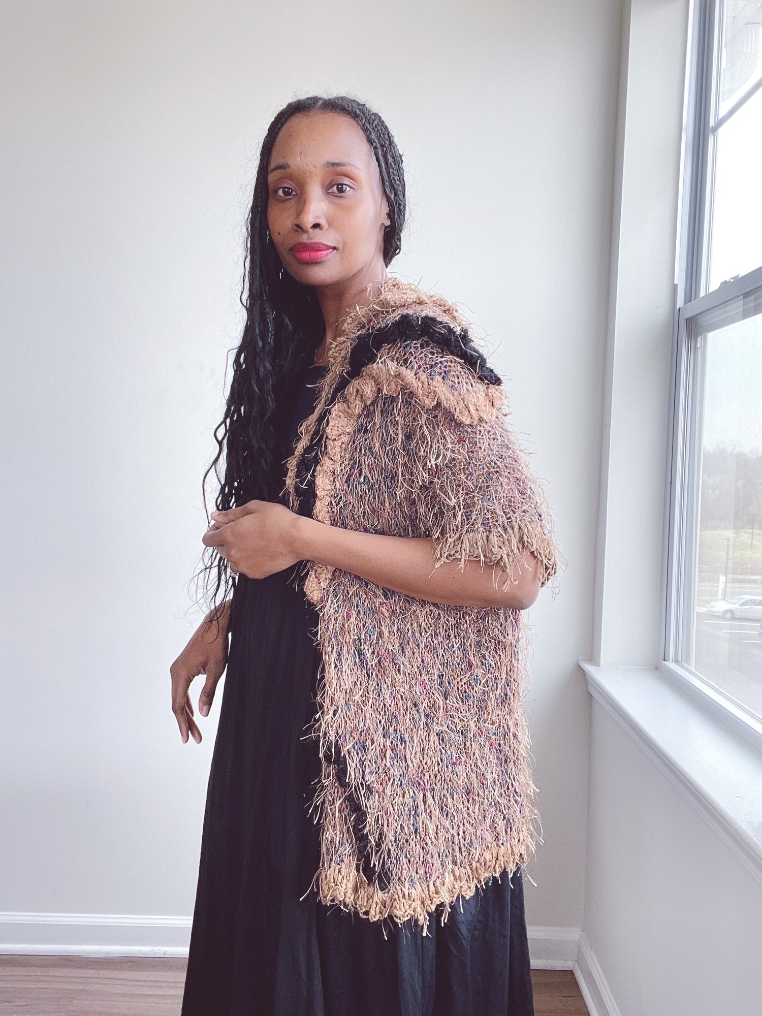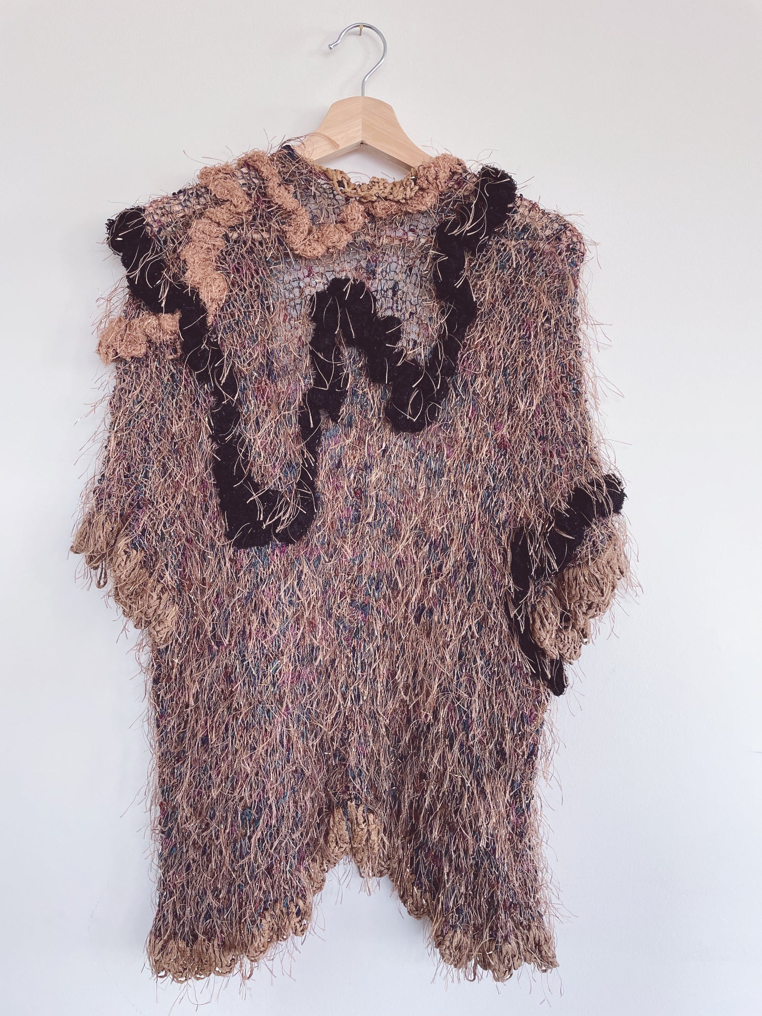 Multi-colored fringe avant garde woven knit duster cardigan.