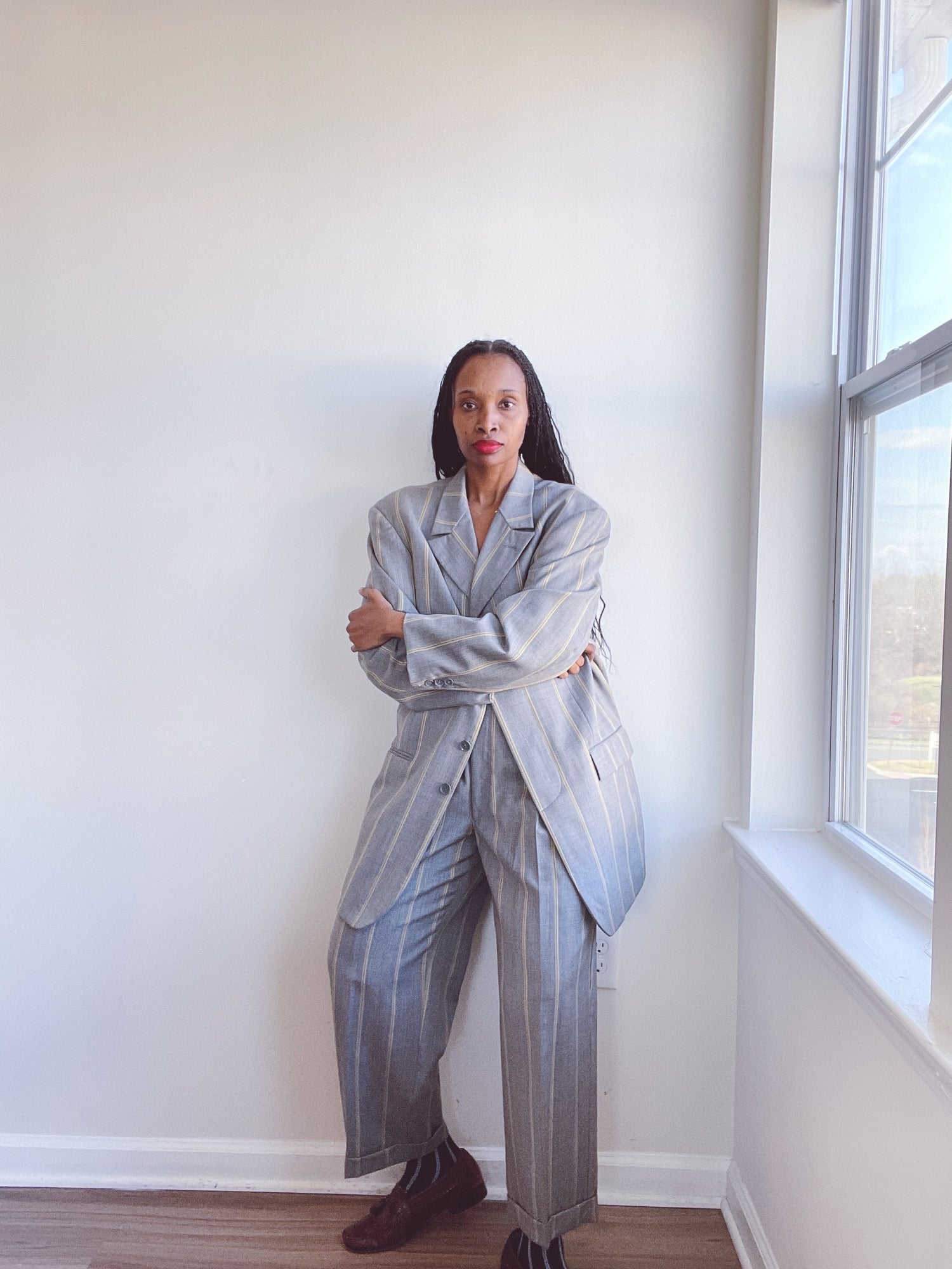 Beautiful yellow and grey pinstripe suit. Cuffed pants. 100% wool easy lightweight suit for spring/ summer. Fully lined jacket and pants.