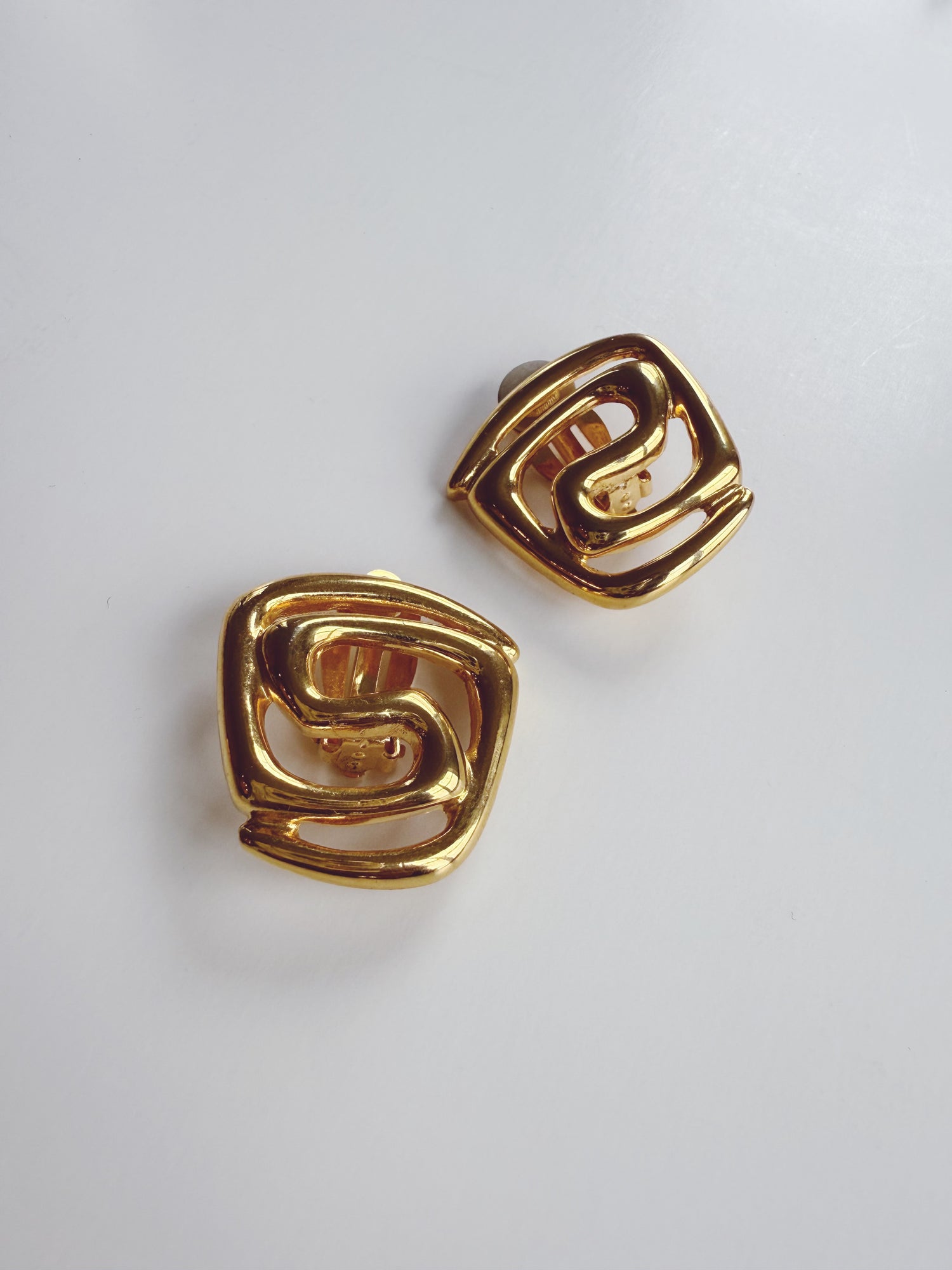 Vintage ANNE KLEIN Gold Metal Spiral Clip On Earrings