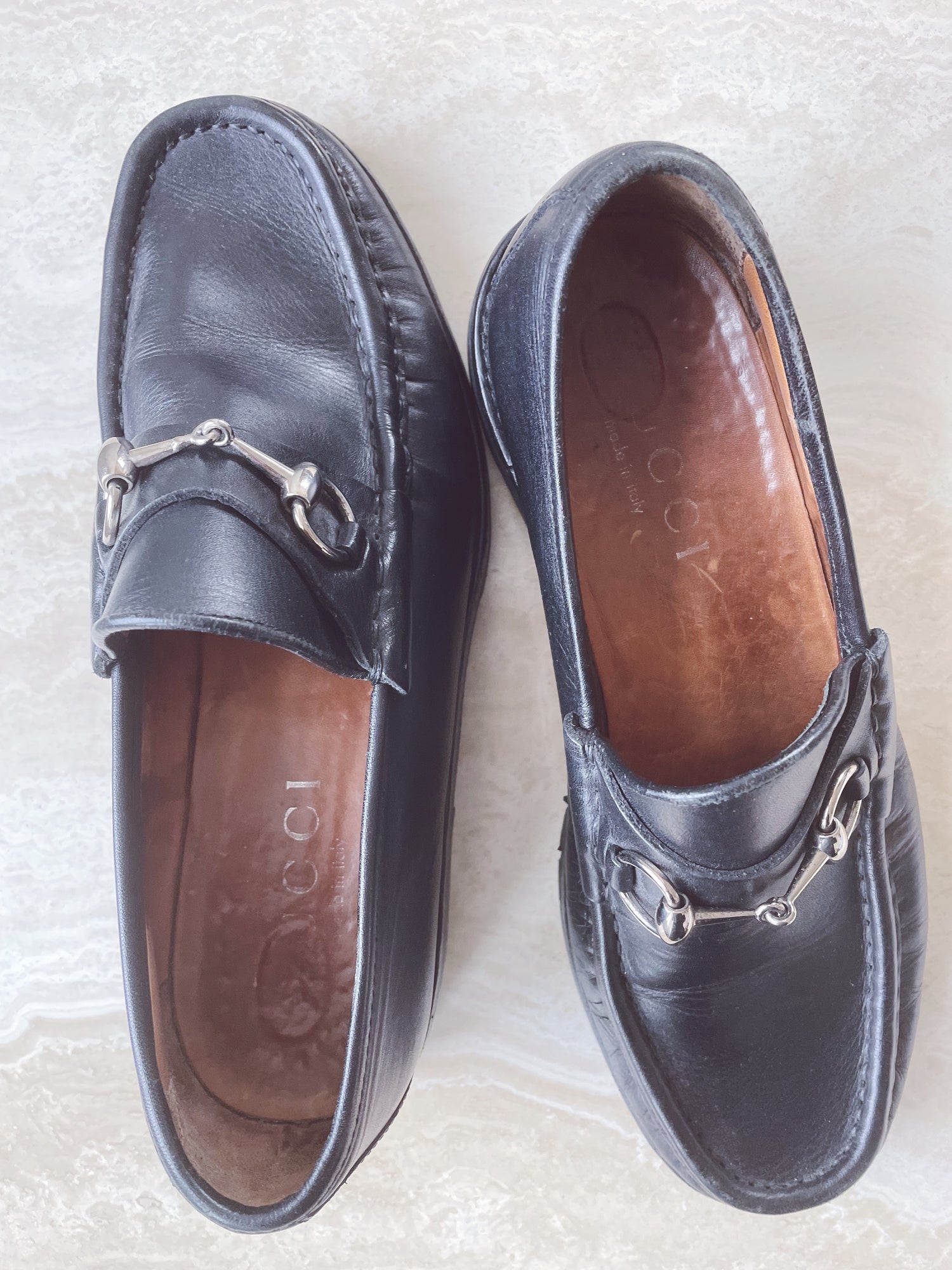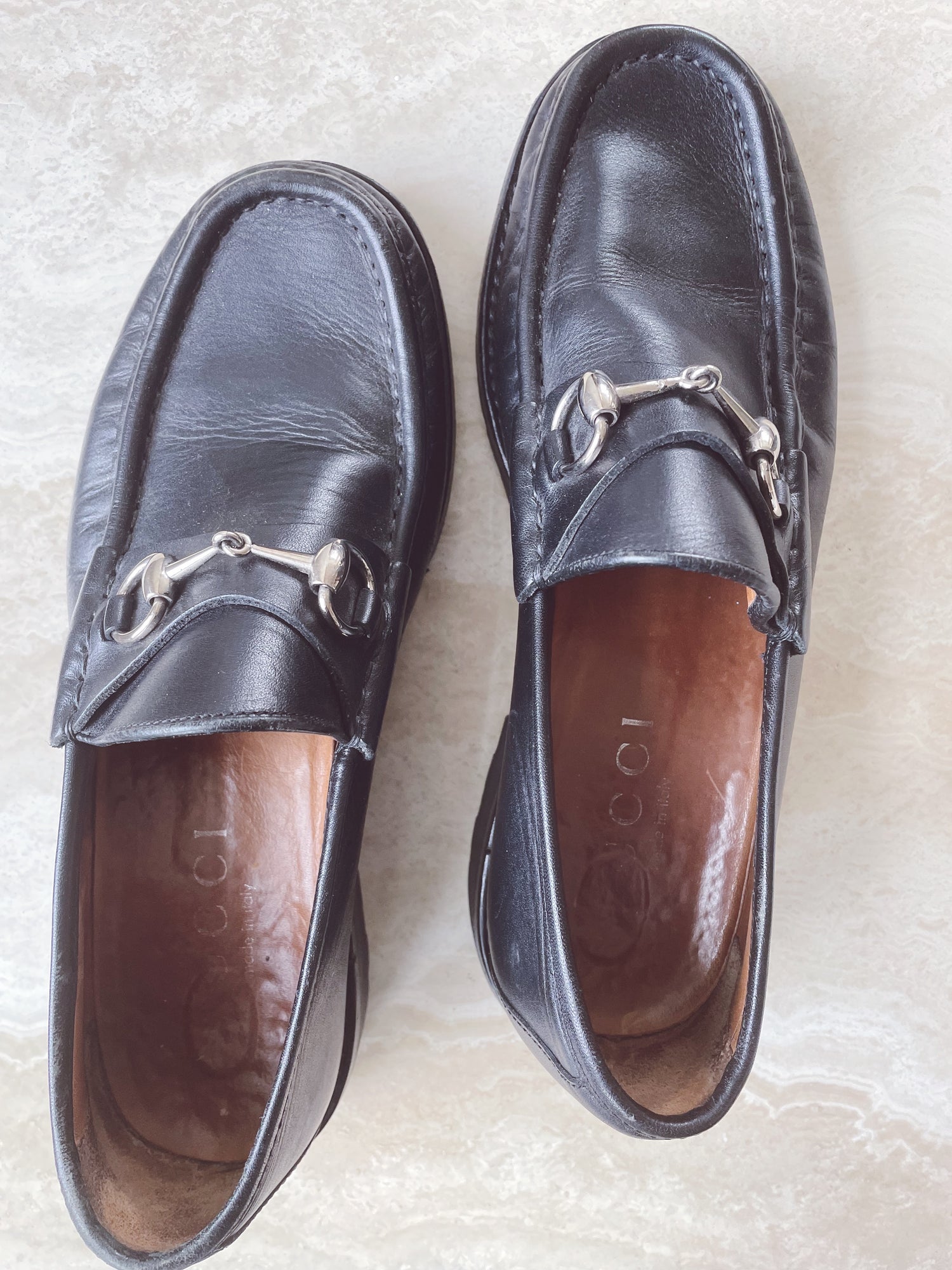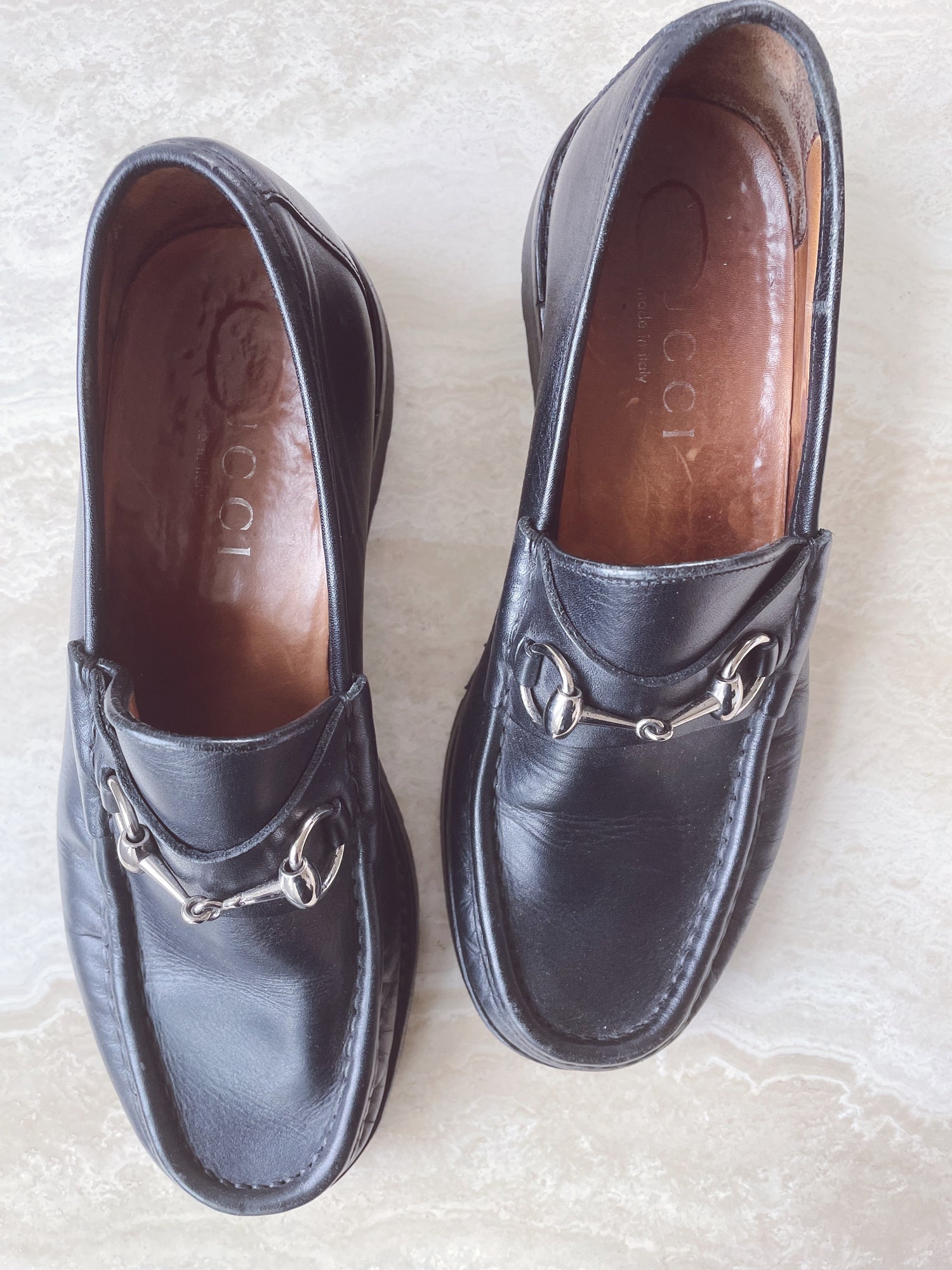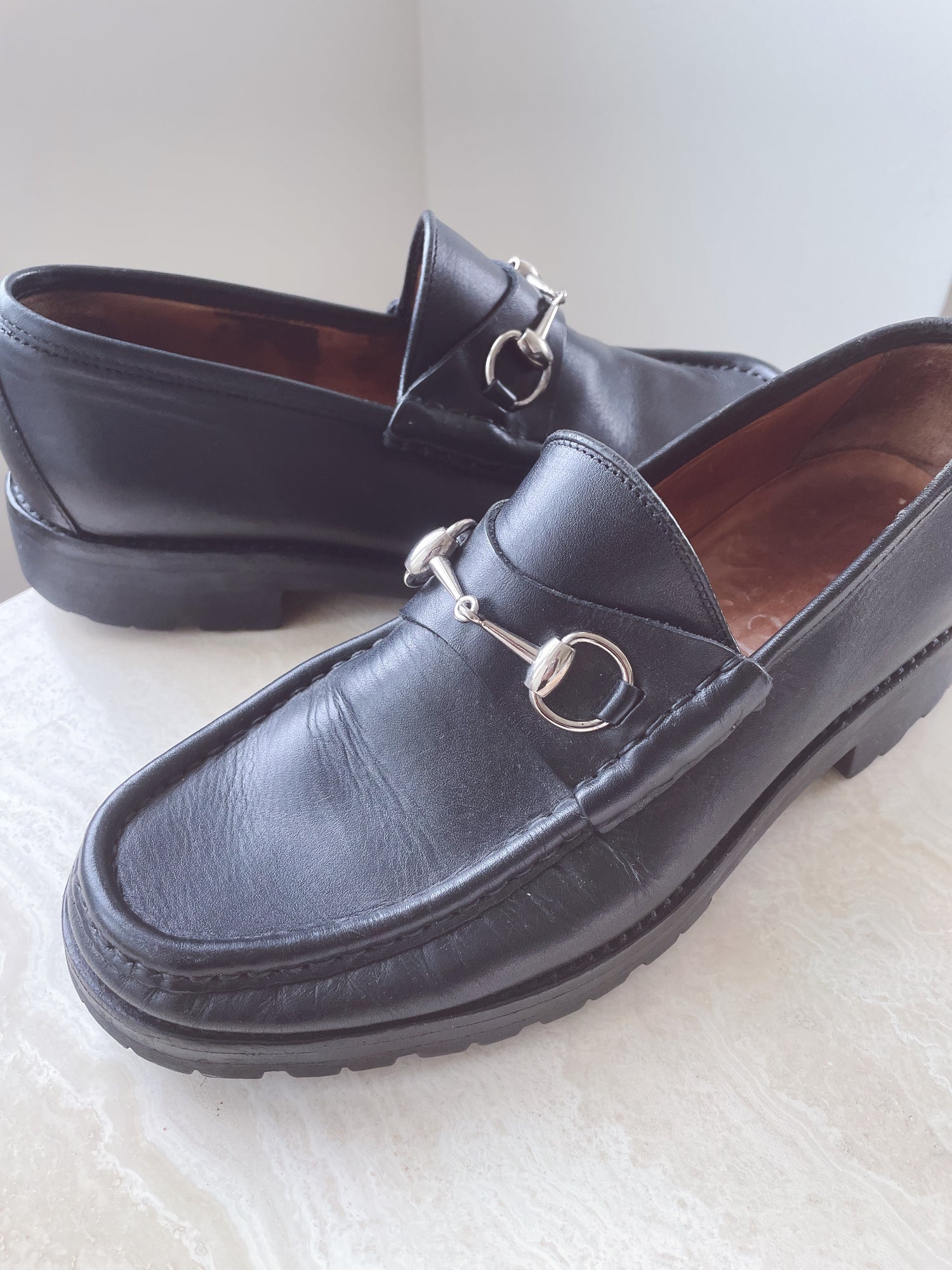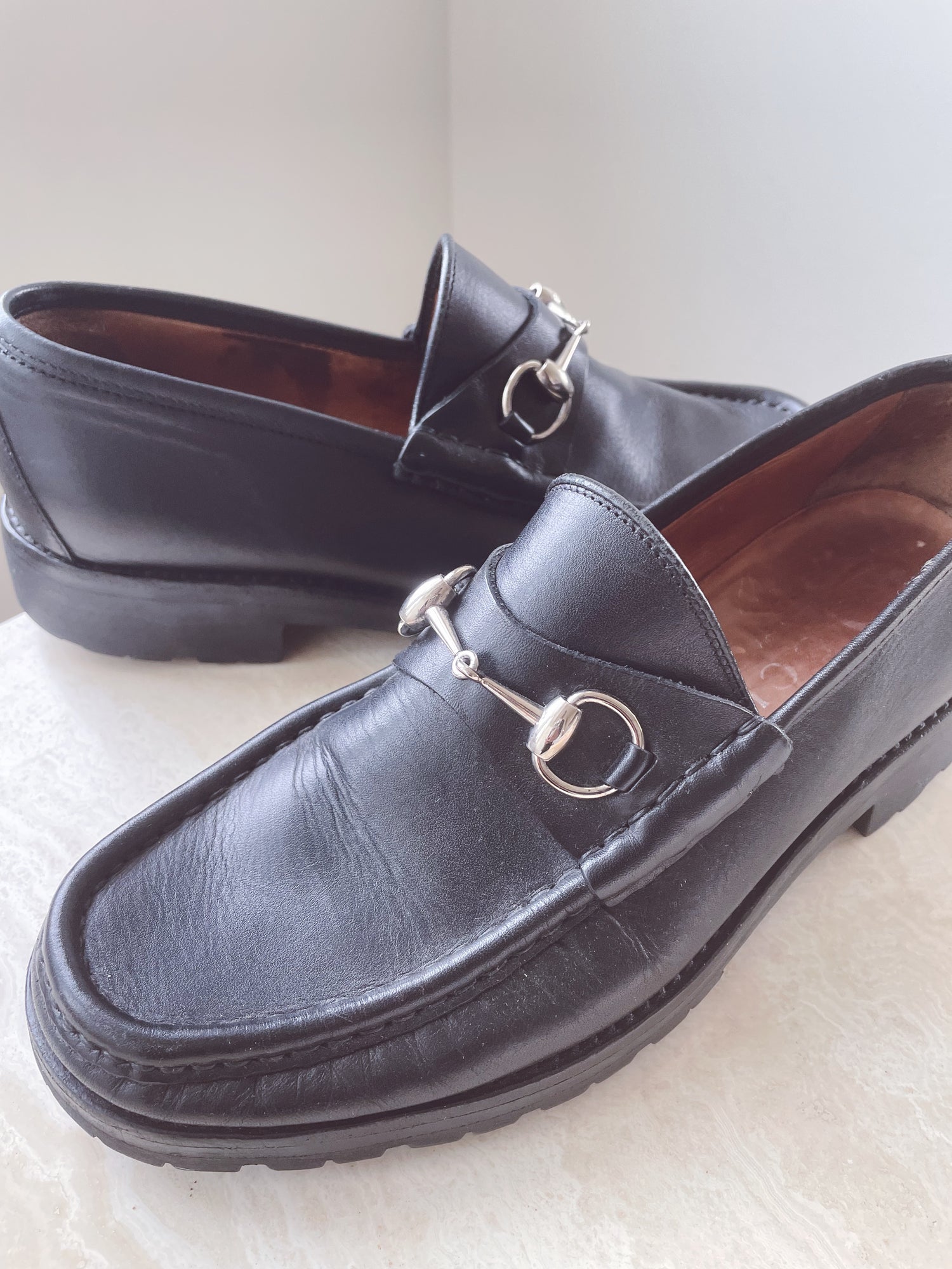 Vintage Gucci horsebit lug leather loafers. Made in Italy.