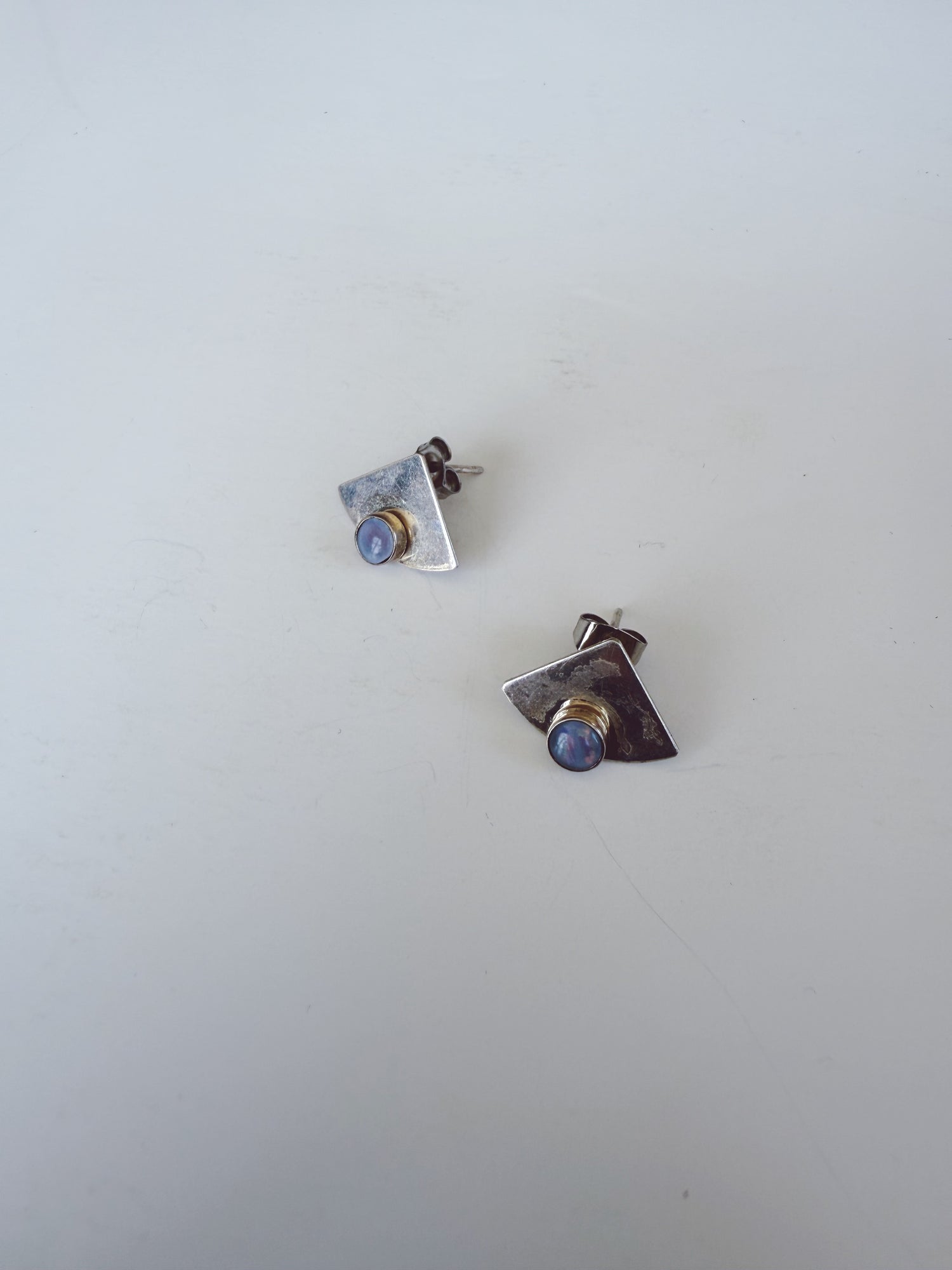 Sterling silver earrings with moonstone. 0.75” post earrings. Signed STP Sterling