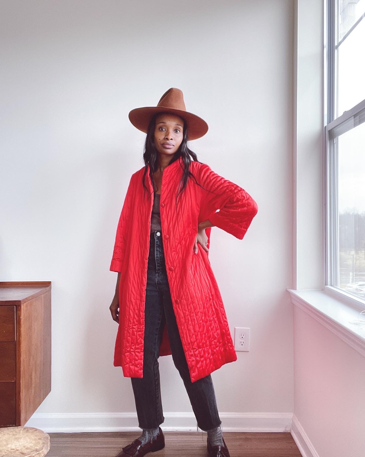 Vanity Fair quilted housecoat. Has button so can be worn closed or open.
