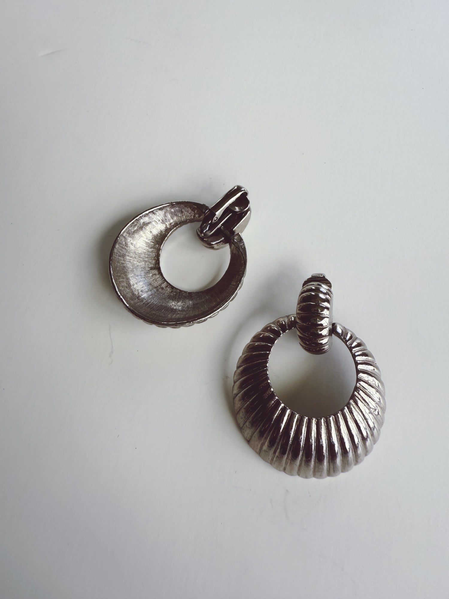 Gorgeous vintage silver metal earrings. 1.75” clip ons.